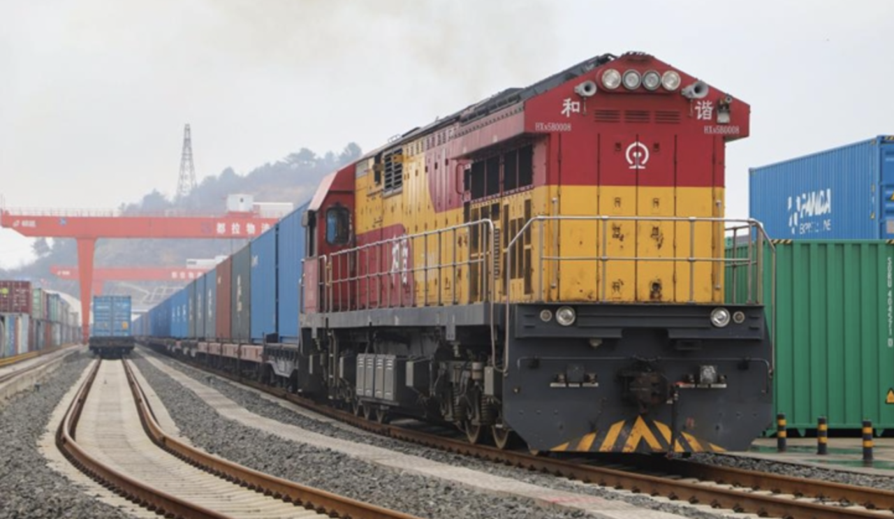 A China-Europe freight train leaves Dulaying Station in Guiyang, southwest China's Guizhou Province, on Feb. 9, 2023. More than 35,000 tonnes of goods has been sent through China-Europe freight train service in Guizhou since its operation on Nov. 18, 2021.(Photo: Xinhua)