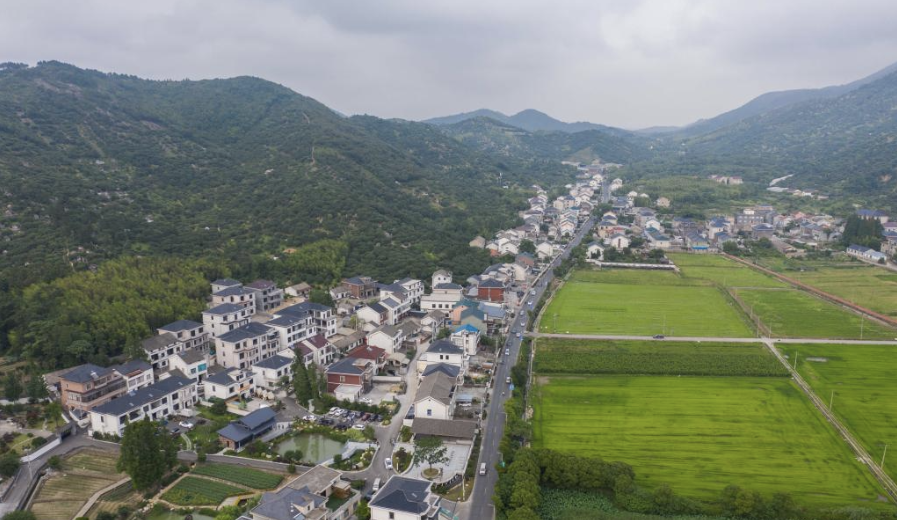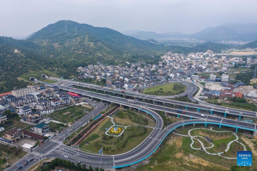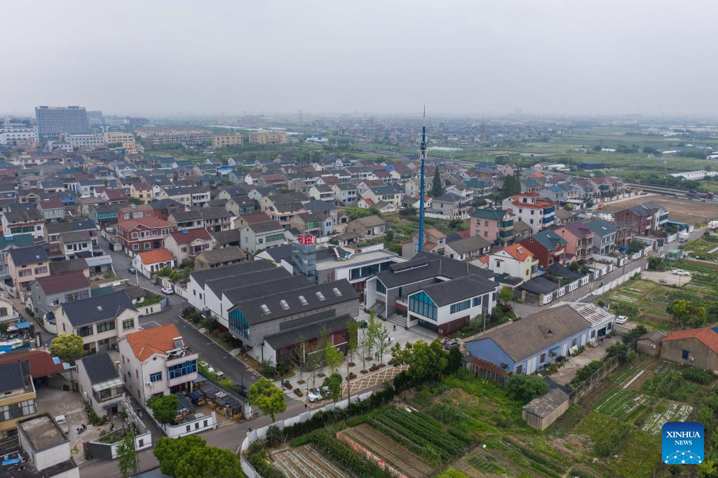 This aerial photo taken on June 12, 2023 shows a view of Changlong Village in Cixi City, east China's Zhejiang Province. Cixi City has been promoting rural revitalization for years. The living environment and life quality of locals have been significantly improved, and the ecological environment of rural areas has also been optimized.