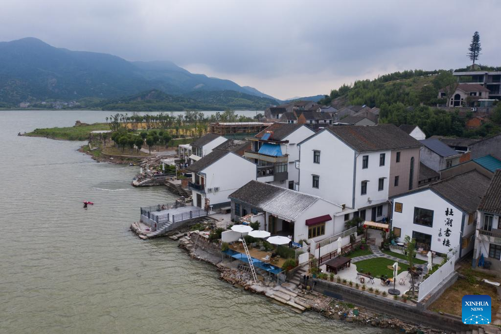 This aerial photo taken on June 12, 2023 shows a view of Shuanghu Village in Cixi City, east China's Zhejiang Province. Cixi City has been promoting rural revitalization for years. The living environment and life quality of locals have been significantly improved, and the ecological environment of rural areas has also been optimized.