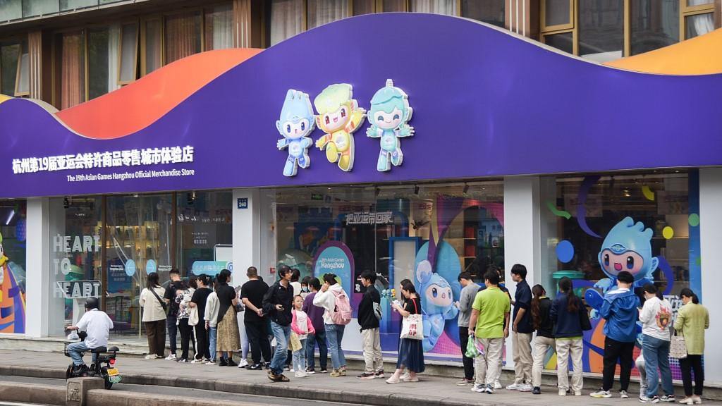 People stand in line to purchase the Hangzhou Asian Games mascot in Hangzhou, the capital of China's Zhejiang Province, September 24, 2023. (Photo/ CFP)