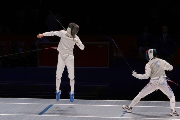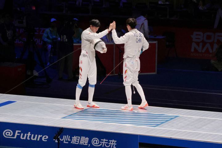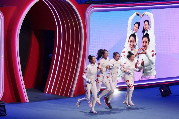 On the evening of September 27th, the Hangzhou Asian Games Men's Team Foil Final and Women's Women's Épée Team Final were held at the Hangzhou Dianzi University Gymnasium.
