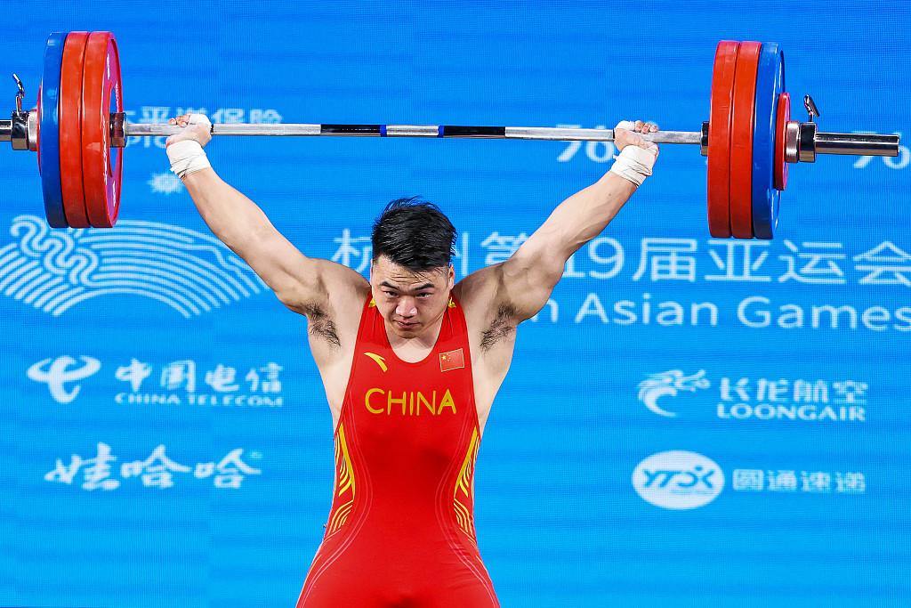 Tian Tao of China competes in the weightlifting men's 96-kilogram event at the 19th Asian Games in Hangzhou, east China's Zhejiang Province, October 5, 2023. /CFP