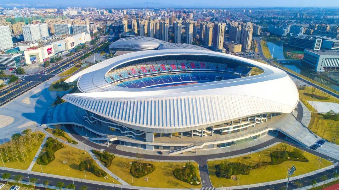 Photo shows an aerial view of Wenzhou Sports Center Stadium in Wenzhou, east China's Zhejiang Province. The stadium is one of the 12 newly constructed venues for the ongoing 19th Asian Games in Hangzhou, Zhejiang Province. (Photo courtesy of China Construction Eighth Engineering Division Corp. Ltd.)