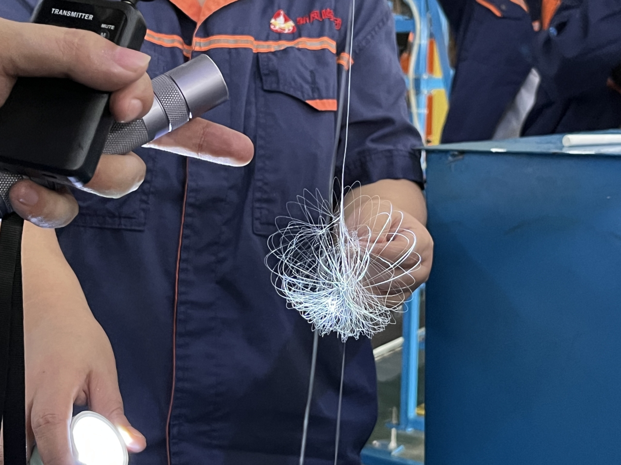 In the spinning section, 5G robots conduct inspections like human workers. "Through intelligent cameras, they inspect our production process for any loose threads and issue warnings," says a representative from Tongxiang Zhongxin Chemical Fiber Co. Ltd.