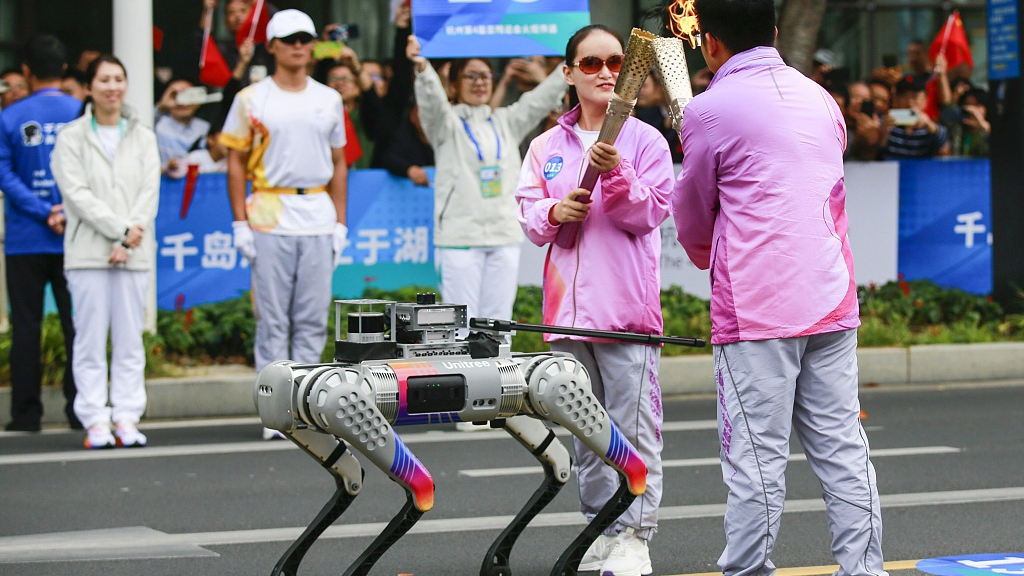 The intelligent guide dog during the torch relay of the 4th Asian Para Games in Hangzhou, Zhejiang Province, China, October 19, 2023. (Photo/CFP)