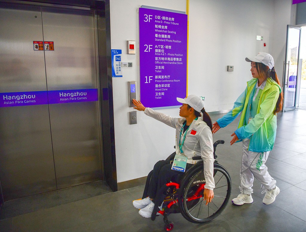 The accessible elevators are designed to cater to the needs of individuals with disabilities at the 4th Asian Para Games in Hangzhou, Zhejiang Province, China, October 24, 2023. (Photo/CFP)