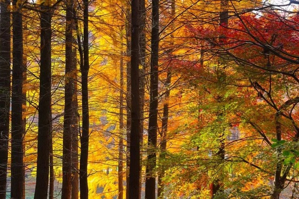 Immerse yourself in the passionate orange of metasequoia trees. Their towering trunks proudly reach towards the heavens, their branches outstretched as if presenting their magnificence to the world.