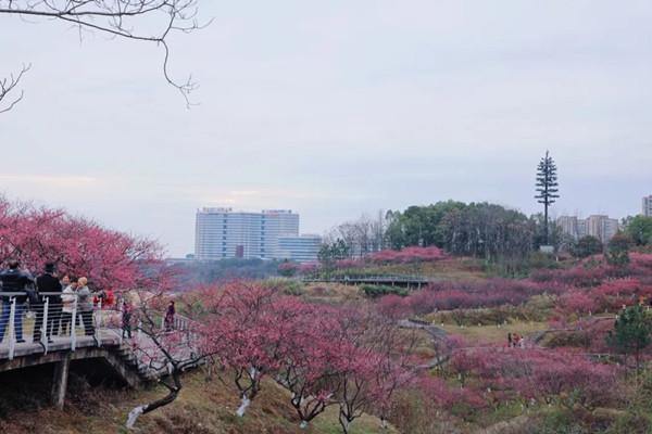 Luming Park in Kecheng district boasts around 3,000 plum trees. Strolling in the park, the delightful aroma of plum blossoms fills the air, creating an enchanting experience as the fragrance wafts over the visitors.