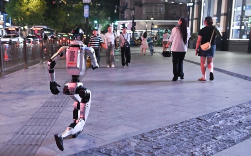 A robot runs on a street near West Lake in Hangzhou, Zhejiang province, on Aug 19. [Photo/IC]