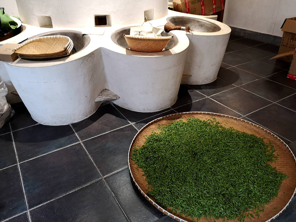 (Home workshop for processing Longjing tea leaves in Meijiawu Village in the West Lake Scenic Area in Hangzhou, east China's Zhejiang Province, March 31, 2019. /VCG Photo)