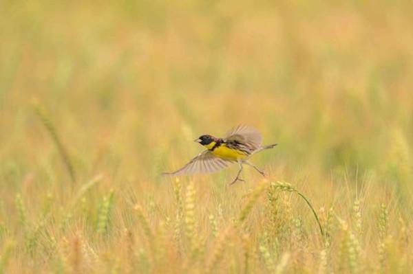 Over 20 yellow-breasted buntings were recently observed in Dongyang, Jinhua, Zhejiang province, marking the first and largest recorded population of these birds in the area.