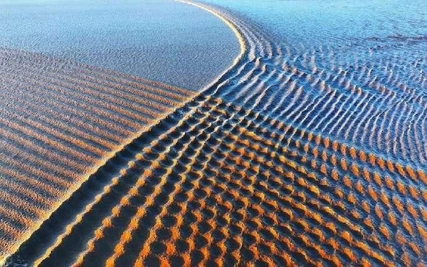 An aerial view of the grid-like tides. [Photo by Huang Qidong/tidenews.com.cn]
