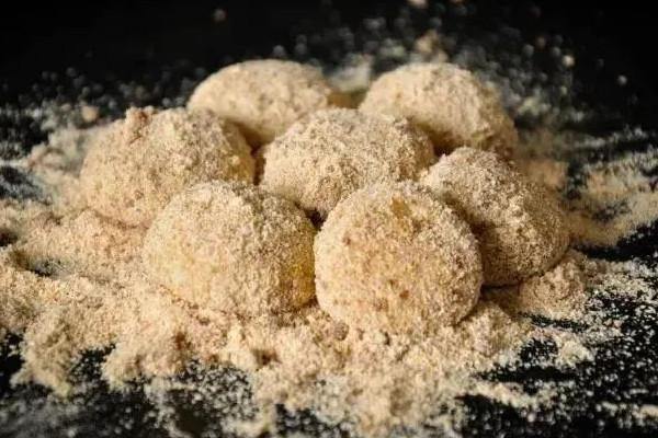 Glutinous rice cakes coated with soybean flour. [Photo/WeChat ID: zjlsly2014]