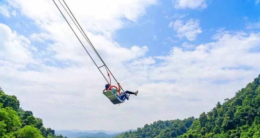 Longwantan's famous swing is located on the edge of a 260-meter cliff. The 12-meter long swing can reach the height of four stories.
