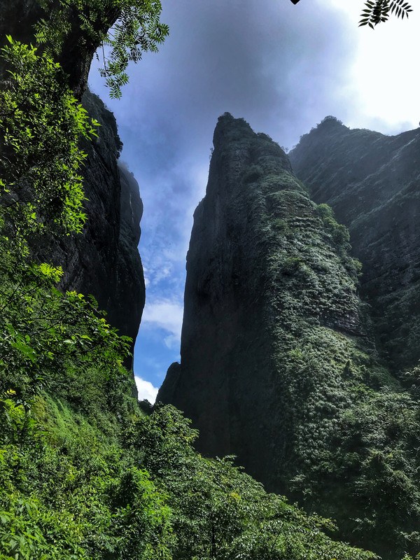 Jianglang Mountain has the beautiful peak of Danxia landform with the most amazing thin strip of the sky in China, the dangerously steep Lang Peak, the thousand-year-ancient Kaiming Zen Temple, and ancient Jianglang Academy. Now over 3,500 stone stairs have been cut along the rocky walls. One can reach the top by going up the stairs for about one kilometer.