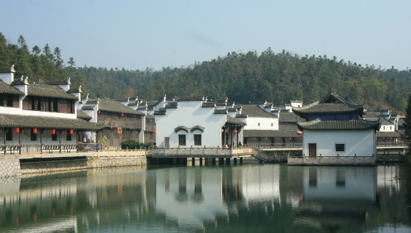 (pinyin: qing shan hu; simplified Chinese: 青山湖) is a large man-made lake built in 1964 and surrounded by mountains on all four sides, it is blessed with great ecological environment. The lake area is home to more than 240 kinds of wild animals, such as white-necked long-tailed pheasant, white stork, black stork and wild duck. The northern part of the lake has a one-million-square-meter forest grown in water which is rarely seen in China and is like a piece of emerald embedded in the water. Someone summed up the scenery of Qingshan Lake with four sentences: "Trees grow in the water; boats travel in the forest; birds sing in the branches and people are walking in the painting-like scenery".