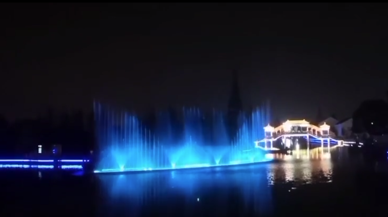 Chen Liqin, the secretary of the village’s CPC Committee said, it was the idea of all villagers to create a floating lake fountain. The villagers wanted to show that the countryside was no longer antiquated as most people imagine. The village itself is a tourist attraction. The fountain will bring more fun to everyone. The fountain is located in Shenbeijing River of the village. The river flows in a zigzag course through the village. The position of the fountain happens to be a wide river surface.