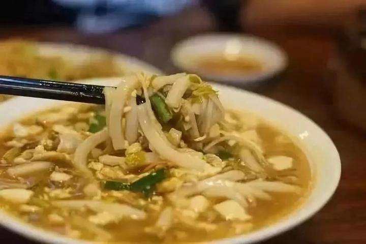 People in Shengzhou have special skills in making rice cakes, as they will fry the rice cakes with soup. The rice cakes are firstly fried and boiled, and then the ingredients are gradually put into the pot: the winter bamboo shoots and the pickled vegetables are extremely fragrant; the tofu is a bit tender in flavor, and the local pork in wine sauce is the best side dish. Once added, the whole bowl of rice cake is sublimated to a new level.