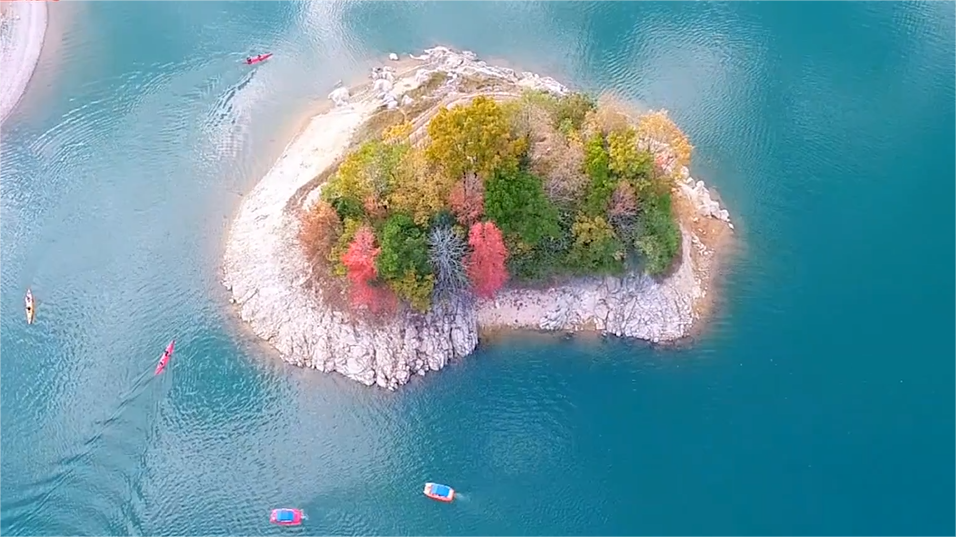 On November 12, at the Hongyewan Water Park in Jinfeng Town, Chun'an, the scenery was beautiful and visitors were experiencing kayaking water group activities, enjoying the scenery and feeling the joy brought by water sports in Qiandao Lake.