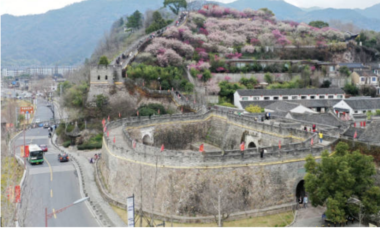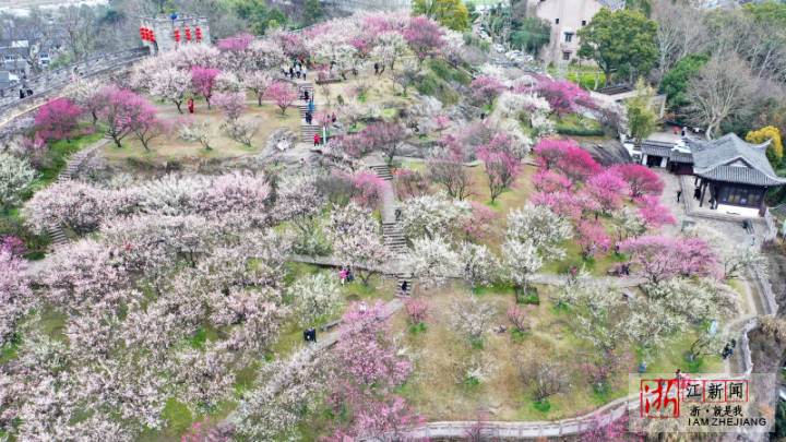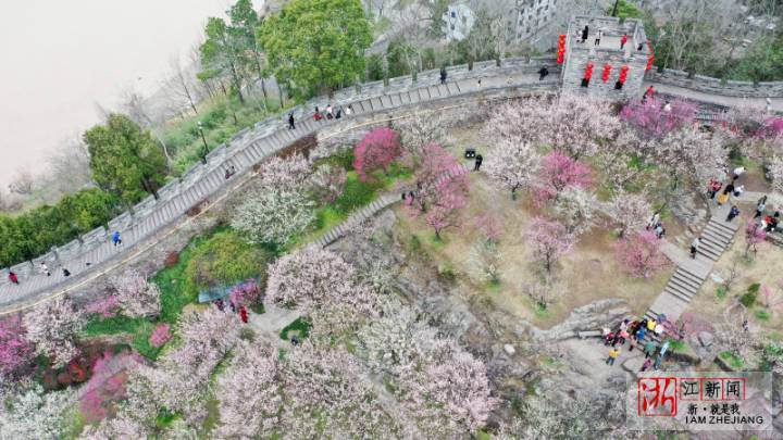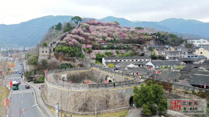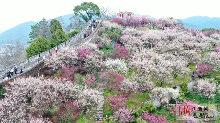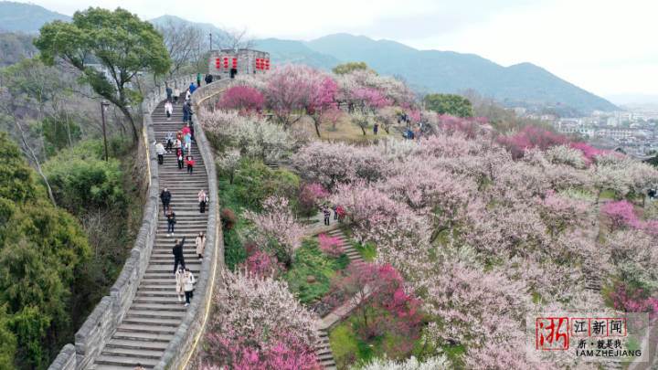 On February 7, the plum blossoms in Linhai's plum garden were in full bloom. The beauty of the plum blossoms and the quaint atmosphere of the ancient city walls together constitute a beautiful scenery, attracting many citizens and tourists to come to enjoy the plum blossoms.