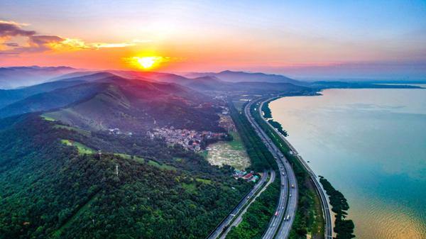 Photo taken on July 3 captures a captivating sunset view of Taihu Lake, the third-largest freshwater lake in China, located in Changxing county, Huzhou. [Photo/hz66.com]