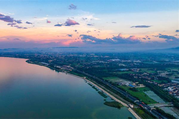 Photo taken on July 3 depicts an enchanting sunset view of Taihu Lake, the third-largest freshwater lake in China, located in Changxing county, Huzhou. [Photo/hz66.com]