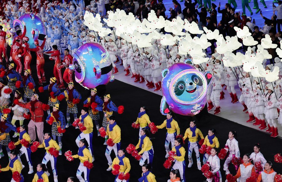 Artists perform during the opening ceremony of the Beijing 2022 Olympic Winter Games. (Xinhua/Lan Hongguang)
