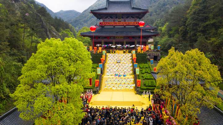 Jinyun's tradition of hosting the Huangdi worship rituals dates back 1,600 years. In 1998, local authorities reconstructed an ancestral temple for Huangdi in the Xiandu scenic area and revived the ritual there.