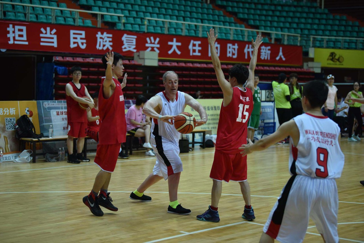 每次我有片刻休息的机会,雪琳就会冲到我面前,用纸巾擦去我脸上的汗——就像妈妈在孩子玩游戏时拍打孩子额头那样,而我一心想的就是要加入我的队友中,聆听那些我其实听不懂的战术讨论。这儿有许多欢声笑语,这就是运动带来的乐趣,它有一种非凡的力量联接团队和竞争对手。这就是为什么它是一场完美的“为友谊行走”友谊赛活动。这次篮球比赛从提议到完美收官只有12个小时,这也再次证实了在中国做事的高超效率——中国速度。