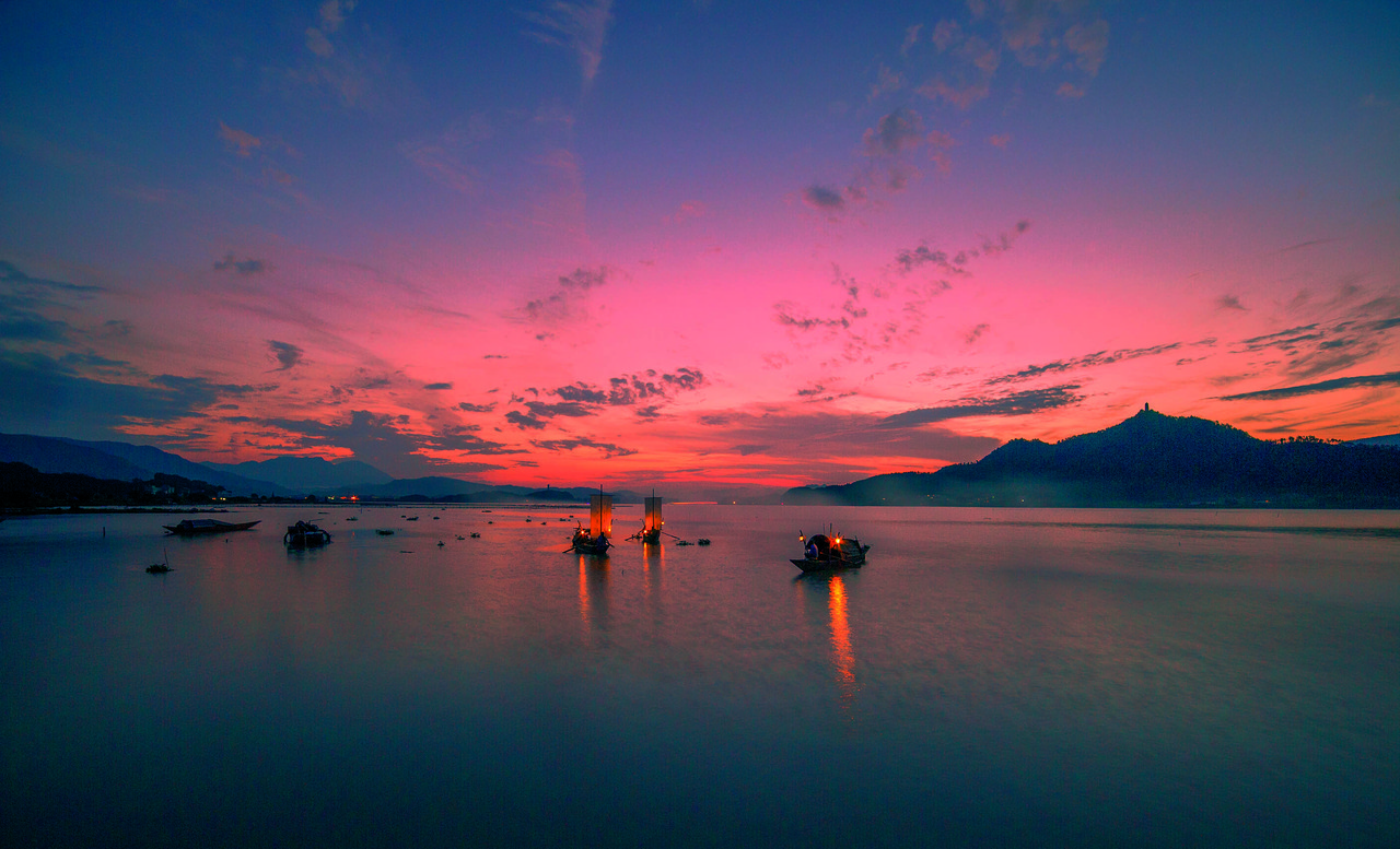 In , a short story penned by Yu Dafu (1896-1945), a young man who fails to make a career and comes back to his home village by a river. The river portrayed in the short story is the Fuchun River zigzagging past the writer’s hometown Fuyang. “The giant sun rises in the east, dissipating the thick mist hanging low on the river. The blue sky is dotted with some thin clouds, whitish and pinkish. A cool breeze drives the mist away, revealing some fishing boats, which look like slender tree leaves. The morning sunlight on the faces of the fishermen shows that these people lead a healthy and complete life on the river.”