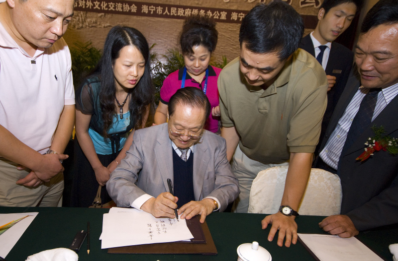The formative years of Jin Yong coincided with the years of war and chaos. His school education was disrupted frequently. The secondary schools and third schools where he received education were in Haining, Jiaxing, Hangzhou, Lishui, Quzhou and Chongqing. In his adult years, he still remembered his school years and felt deeply indebted to the schools and teachers. In October 2004, he revisited Quzhou No. 1 Middle School after a hiatus of 60 some years. The 81-year-old novelist and educator was warmly welcomed.