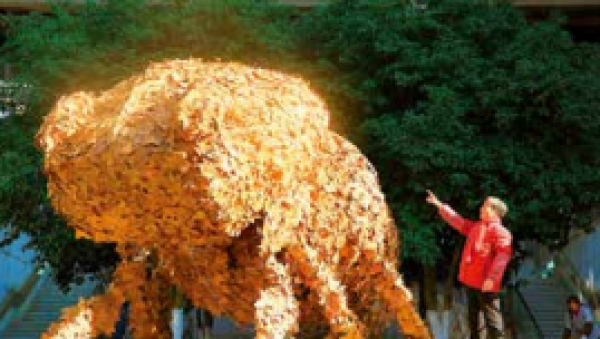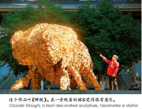 这次展示的几组落叶雕塑作品,从全国各地200余个征集方案中脱颖而出,由来自全国的300多名志愿者共同参与完成。