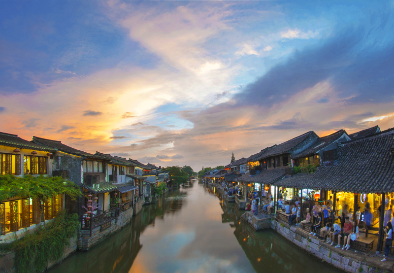 Now a tourist attraction, Xitang was a prosperous canal town in the era of canal-dependant cargo shipping. Local historians claim that Xitang has a canal system that can be traced to the Spring & Autumn Period about 2,800 years ago, that Xitang first thrived as a canal town in the Tang and the Song and that Xitang now has a full array of houses built in the Ming and the Qing. As a tourism attraction, Xitang is celebrated for its bridges, lanes and covered riverside streets.