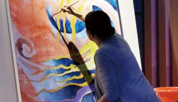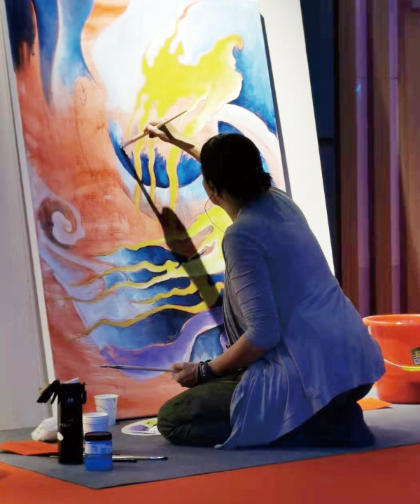 One place in this “open studio”is the Liangzhu Museum. Impressed by the ancient Liangzhu culture when she first settled in Hangzhou, she has already visited the museum a number of times, studying the patterns used during the time and integrating them into her paintings.