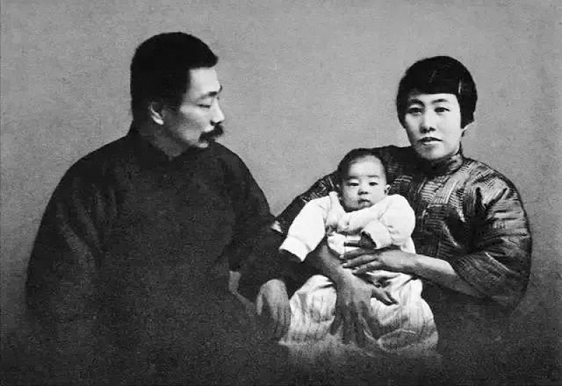 Lu Xun and his wife Xu Guangping are seen in a family photo for the 100-day celebration of his son’s birth (photo taken on January 4, 1930)