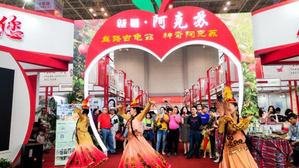 The 24 exhibition booths of Aksu and Alaer City of the First Division of the Corps have attracted a lot of businesspeople and citizens for their “exhibition and sales of agricultural products and the experience of Xinjiang cuisine and an exhibition of the fruits of assistance to Xinjiang and folk custom culture”.