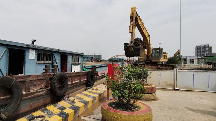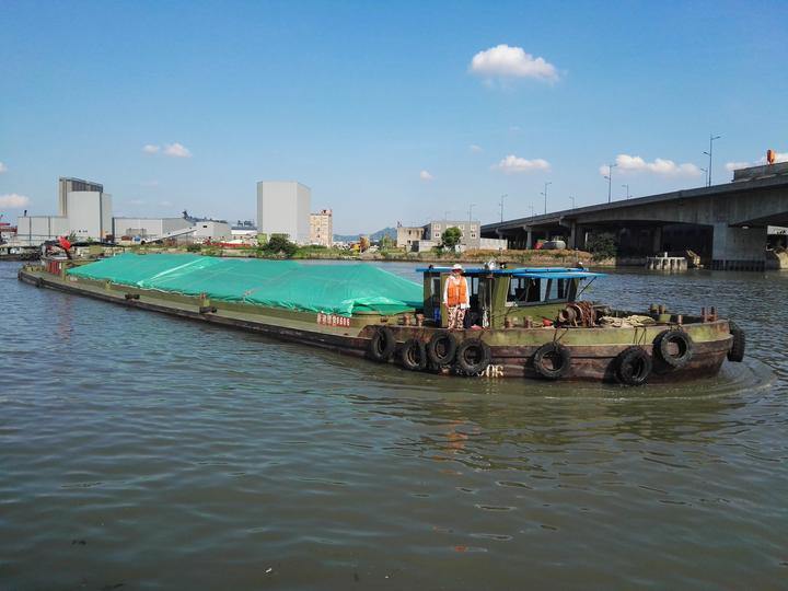 When the ship leaves the dock, the cabin loading the muck has been completely covered by rain-tight materials to prevent dust pollution.